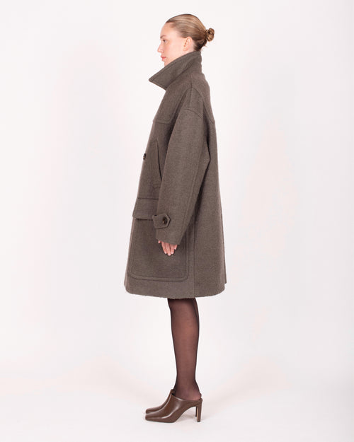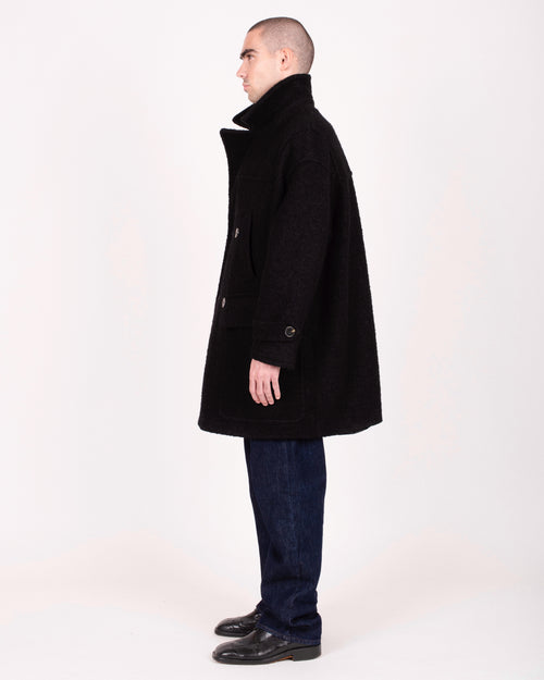 Manteau croisé en laine semi-bouclée